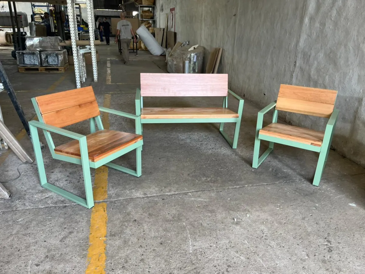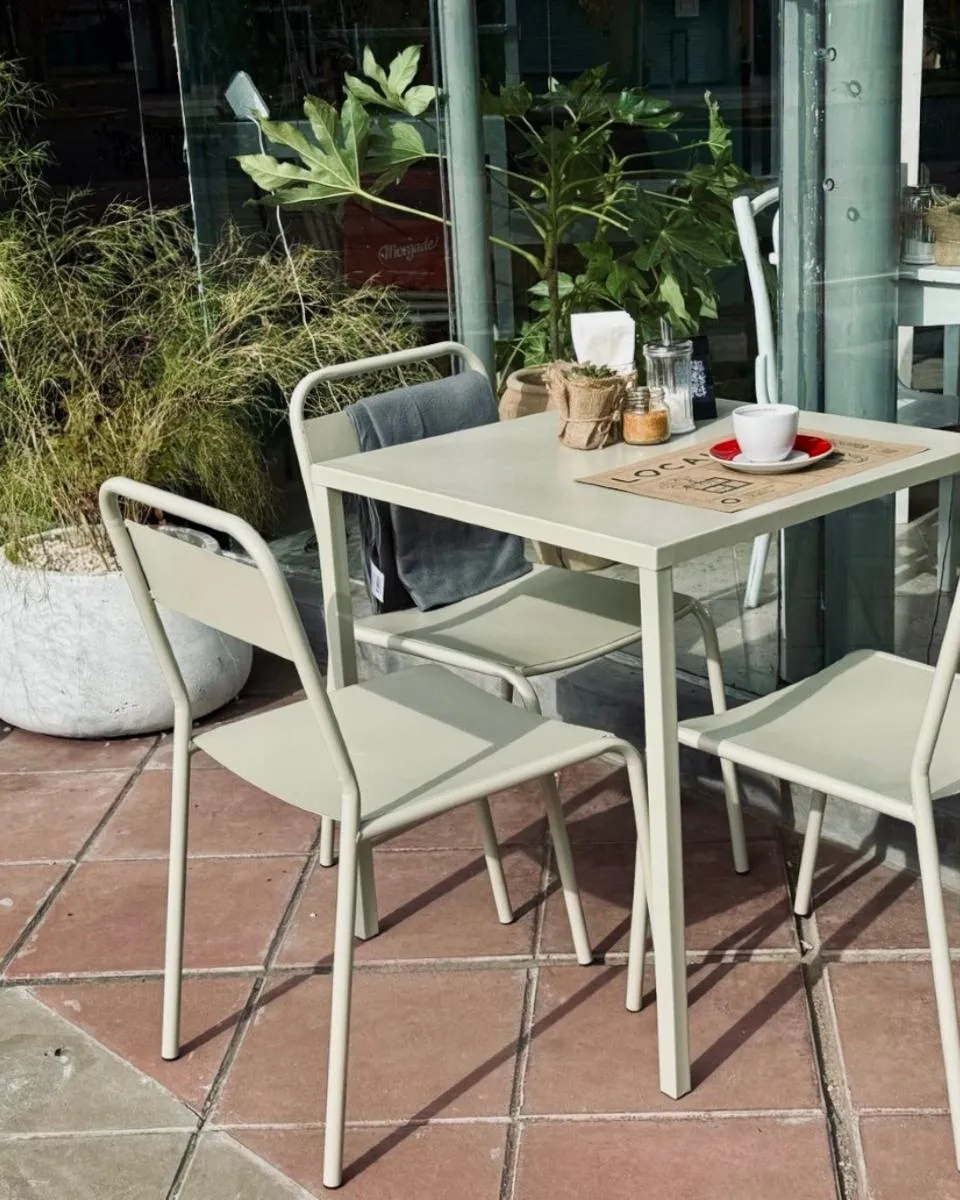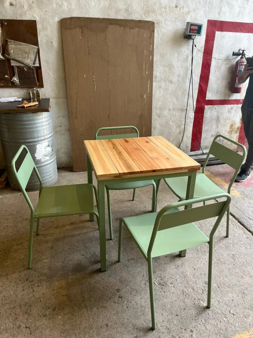 Este combo está fabricado con estructura metálica y tapa madera eucalipto laqueado natural, convirtiendo tu local en un espacio sofisticado y moderno.